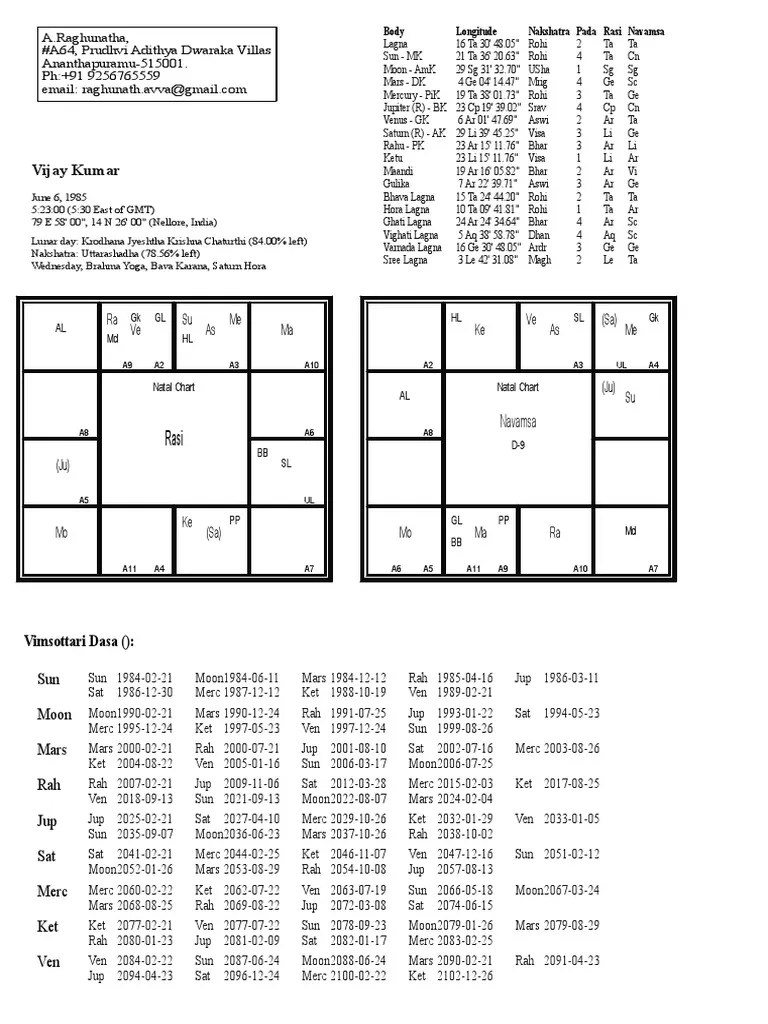 A Comprehensive Natal Chart and Vimsottari Dasa Analysis for Vijay