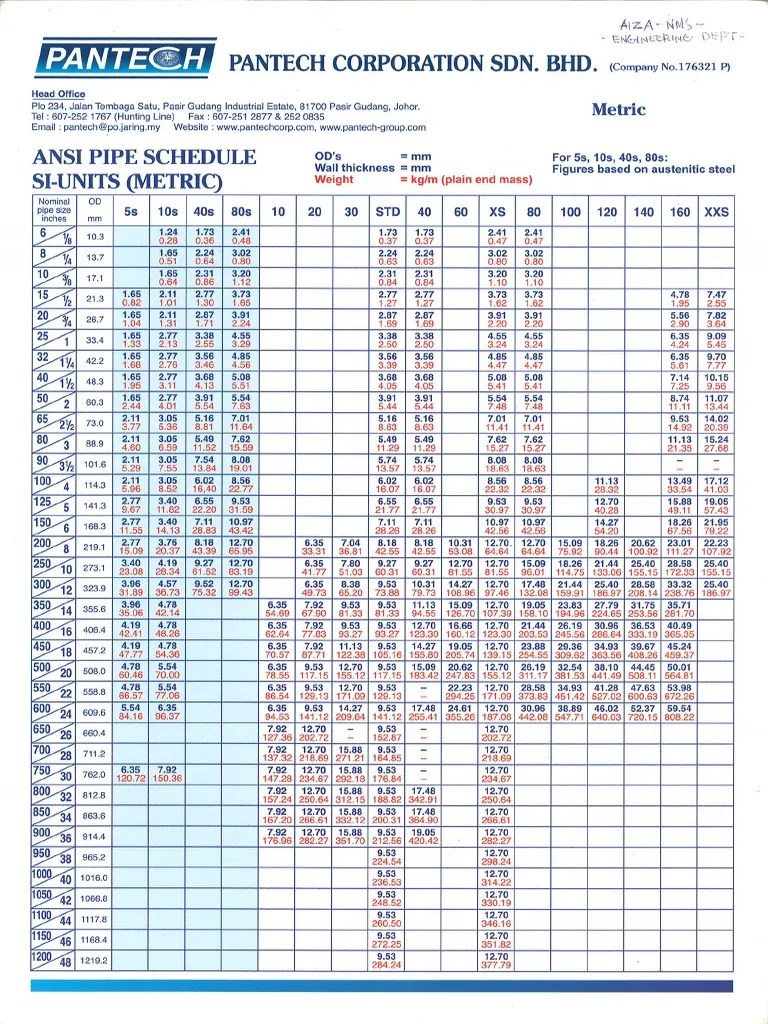 Web 175 Rows Use Our Ansi Pipe Schedule Chart To Determine The Nominal Pipe Size, Wall Thickness, Weight And Schedule Designations Of.