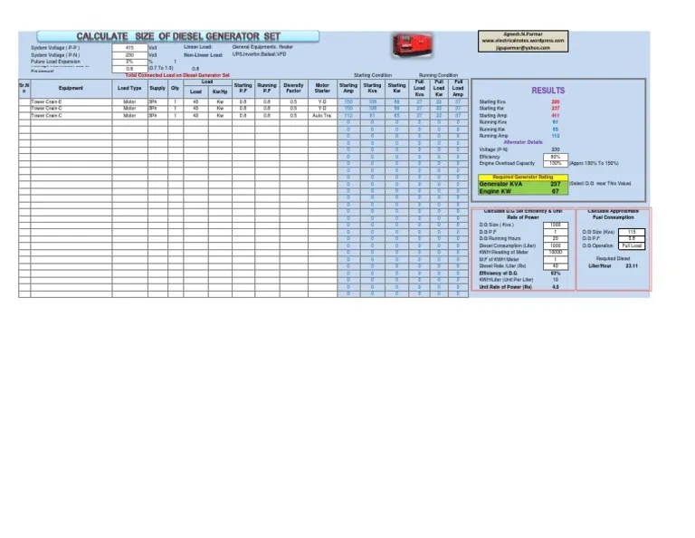 D.G Size Calculation(22.8.12)+1 Watt Diesel Engine
