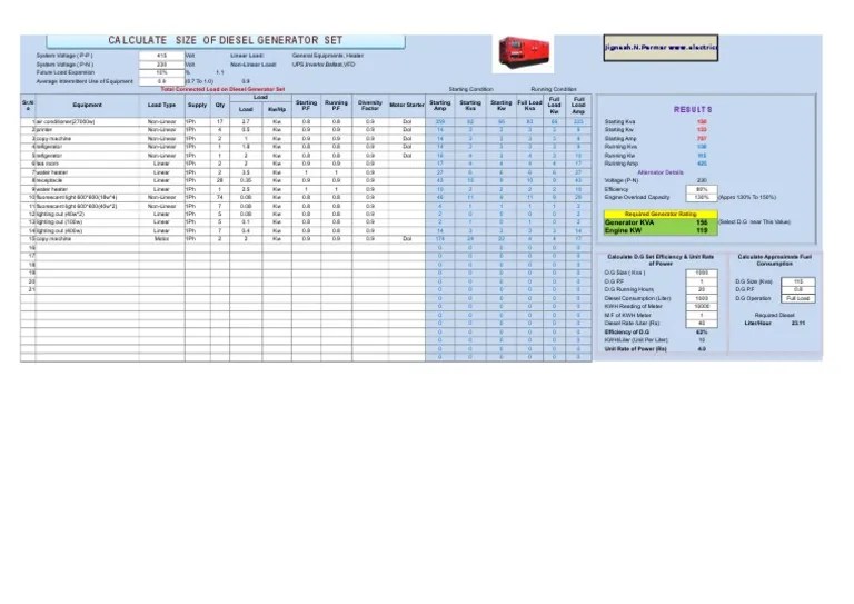 D.G Size Calculation