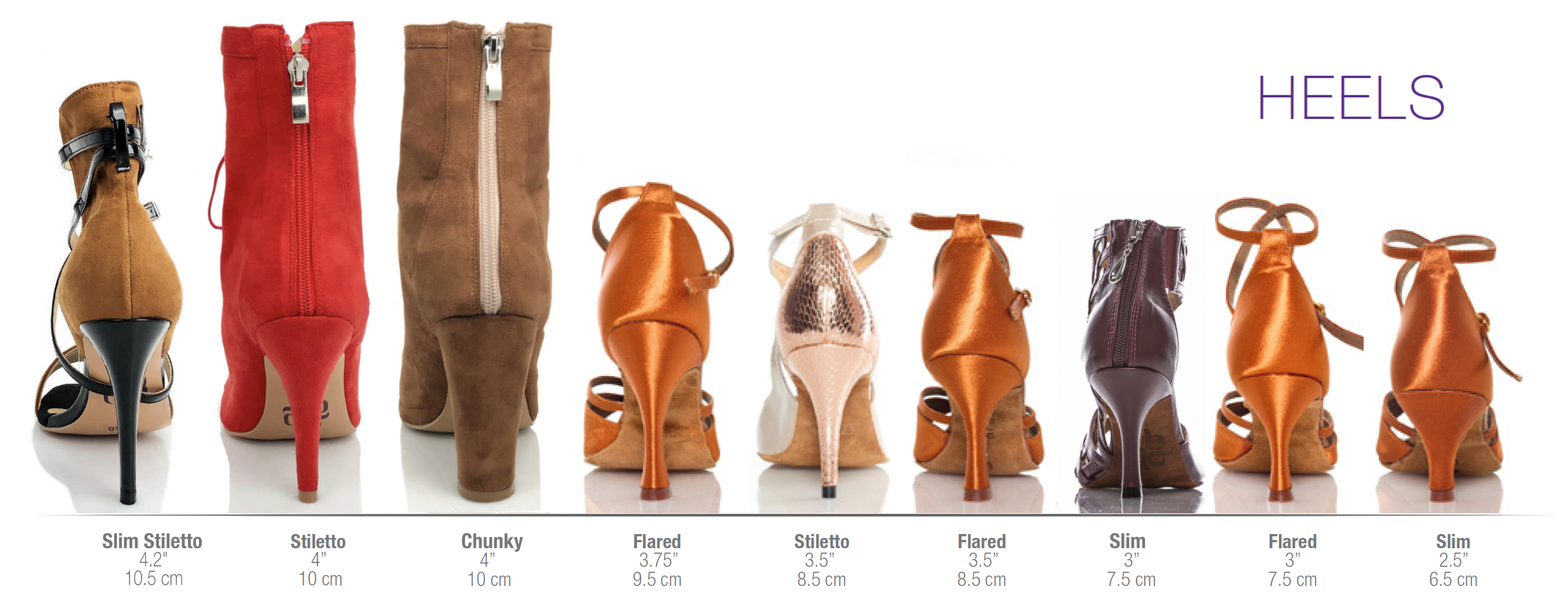 Converting between international high heel sizes is not as difficult or painful as you might think. Web the heel height chart below gives the heel heights for each type of heel. The heights are given as a range in the heel height chart because there are no “official” measurements about the heel height required to make a shoe qualify as.