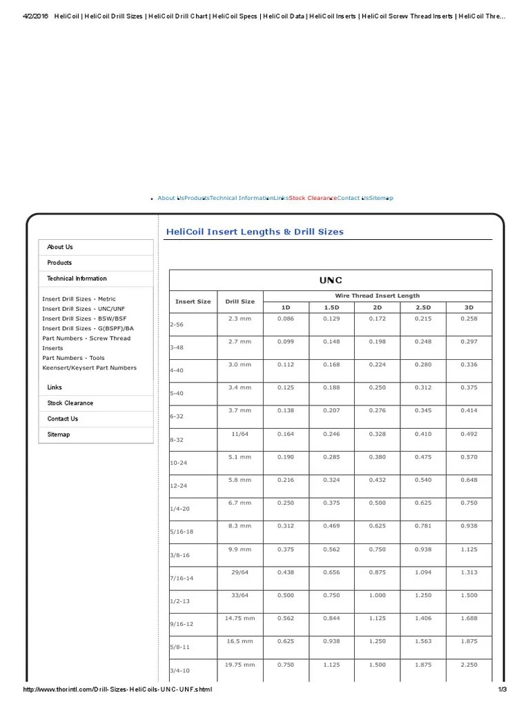 Helicoil Drill Chart, Helicoil Drill Size,, 42 OFF