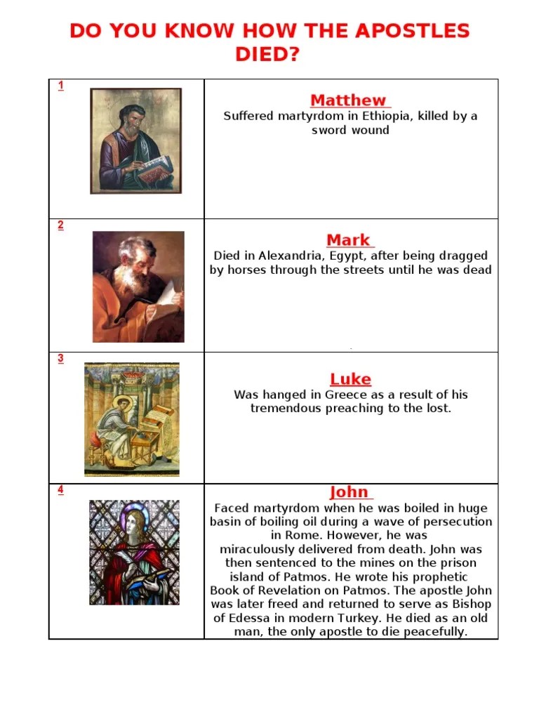 Apostles Death Chart A Visual Reference of Charts Chart Master