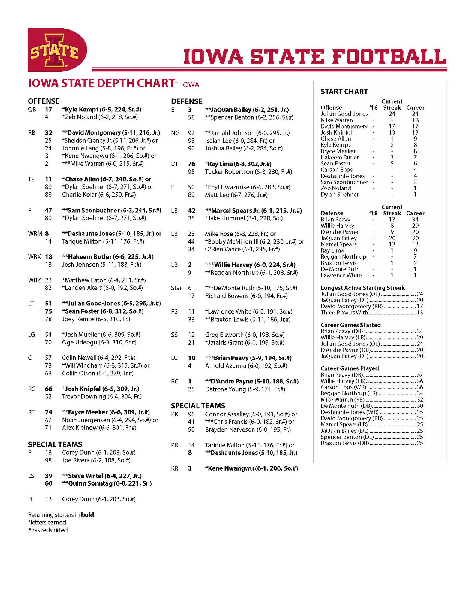 Cyclone Football on Twitter "Iowa State depth chart for Saturday's