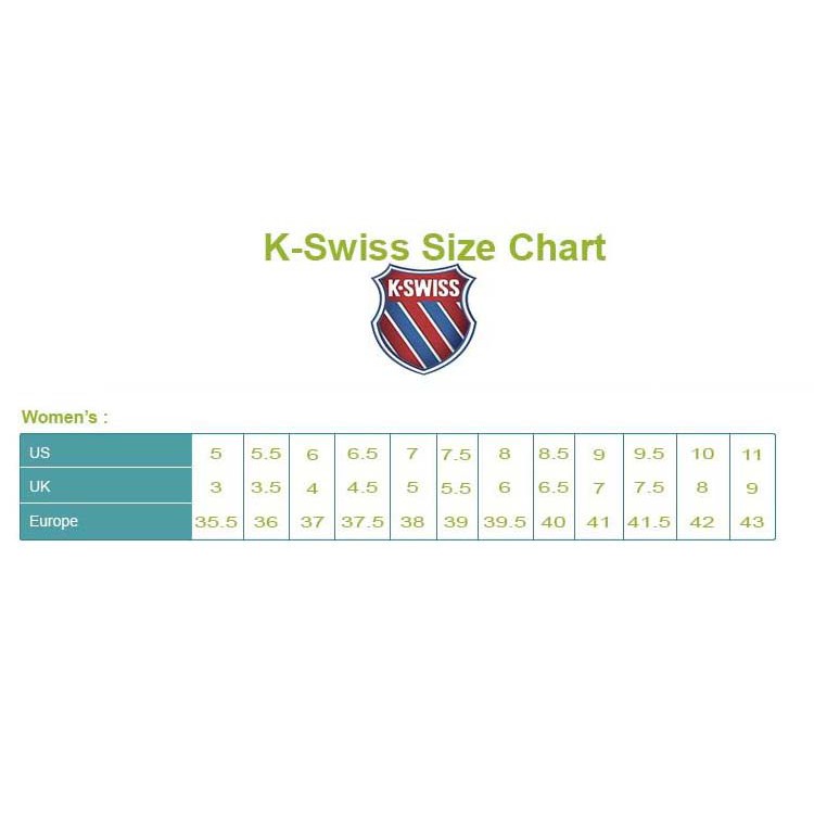 K Swiss Size Chart - Web 21 rows mens womens kids apparel mens shoes us size eur size length (cm) 5 37.7 23 5.5 38 23.5 6 38.5 24 6.5 39 24.5. Use your measurements and the chart below to determine your shoe size. Web mens womens kids apparel mens shoes us size eur size uk size length (cm) 5 37.7 4 23 5.5 38 4.5 23.5 6 38.5 5 24 6.5 39 5.5 24.5 7 39.5 6 25 7.5 40 6.5 25.5 8 41 7.