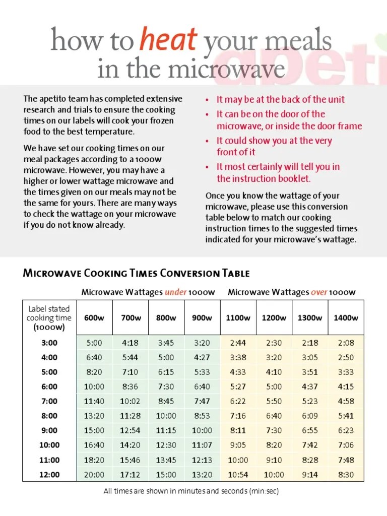 Microwave Conversion Chart 700watts to 1000watts by Budget101