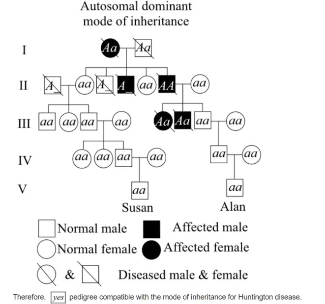 Solved Pedigree Chart Illustrating Huntington's Inheritance