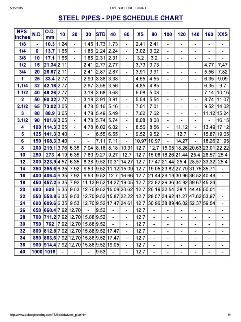 Pipe Schedule Chart Pierredostie